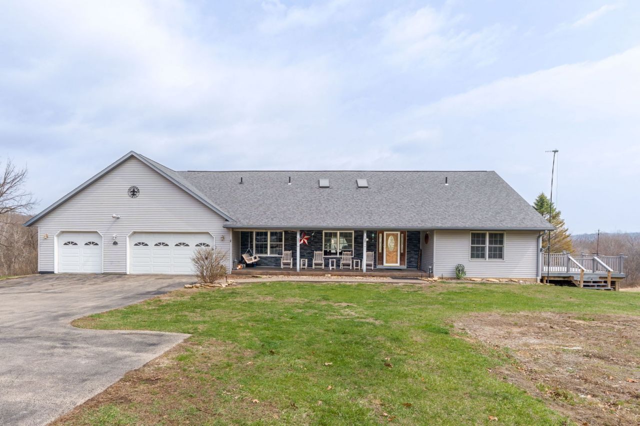 Beautiful home located just outside of town on 3.85 acres of serene, wooded landscape. This 3-bedroom, 2.5-bath property offers the perfect blend of privacy, comfort, and modern amenities, complete with a 3-car heated garage. Step inside to a spacious living room featuring vaulted ceilings and an abundance of natural light. The stunning master suite includes a luxurious bathroom with a steam shower, jetted tub, radiant heated floors, and access to a private deck-your own personal retreat. The kitchen is designed for both everyday living and entertaining, complete with a built-in coffee and wine bar. Enjoy gatherings on the large back deck overlooking the peaceful surroundings. The walk-out basement expands your living space with heated floors, a generous family room, exercise room, office area, and ample storage. The 3-car garage is equipped with both radiant heat and a forced-air furnace for year-round comfort. Take in the beauty of nature with your own private wooded acreage-perfect for relaxing walks and enjoying the abundant wildlife. Don't miss out!